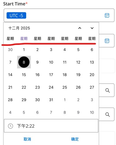 This issue affects the ability to correctly display localized weekday headers in Chinese within the SfCalendar control.