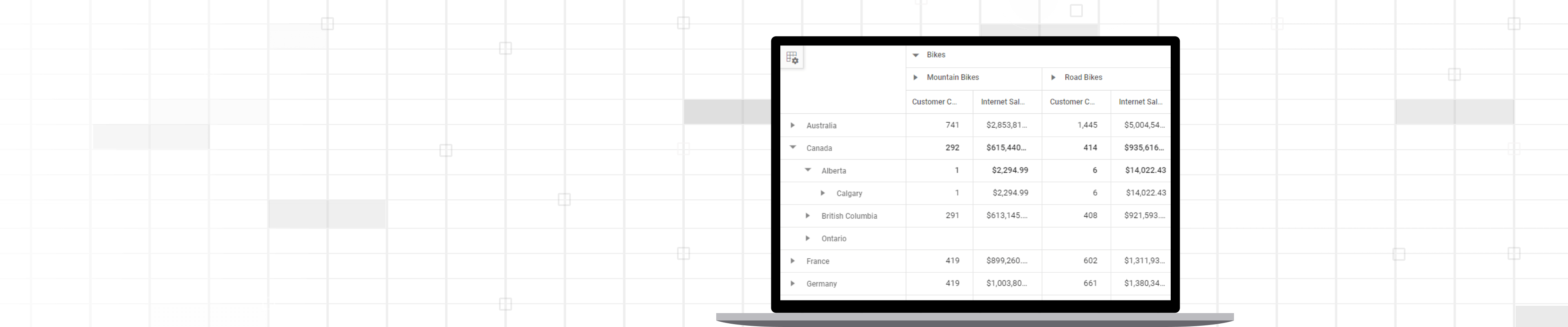 The HTML5/JavaScript Pivot Table can now be connected to multidimensional data (OLAP) that is organized into dimensions, hierarchies, measures, named sets, etc., and its result visualized in both tabular (pivot table) and graphical (pivot chart) formats. End users can customize its report on the fly with the help of grouping bar and field list. Users can also store the report for later use.