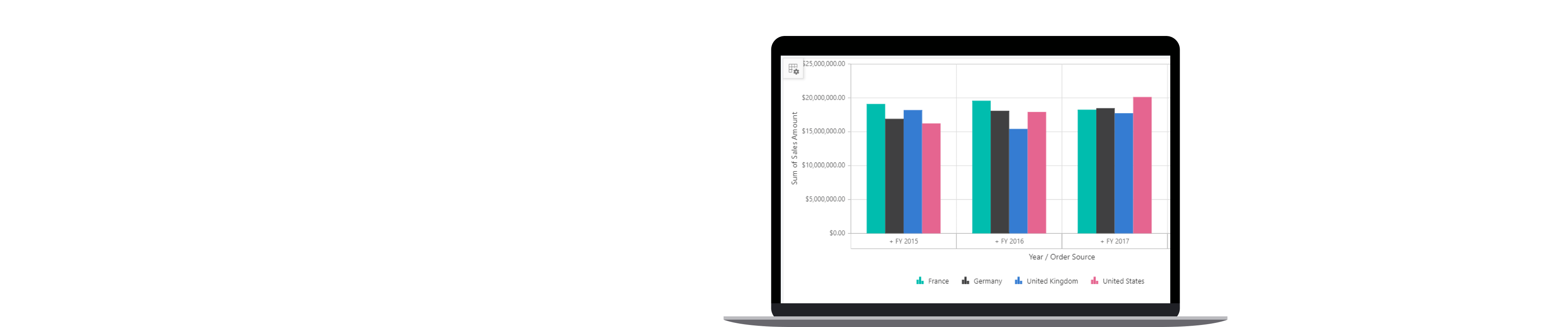 The field list and grouping bar options allow users to change reports bound with pivot chart dynamically. End users can drag, filter, and sort fields, as well as create pivot report at runtime.