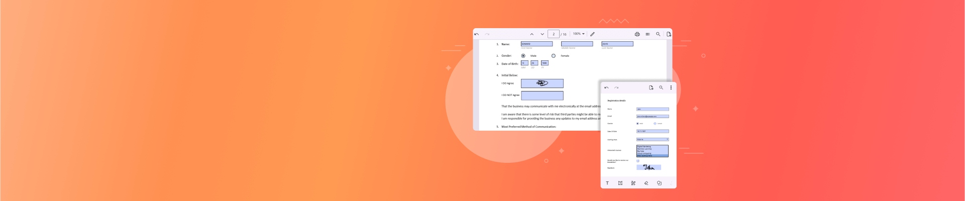 Fill PDF form fields with data interactively using UI as well as programmatically using APIs. Data can be entered manually for smaller forms and automatically for larger or multiple forms using APIs.