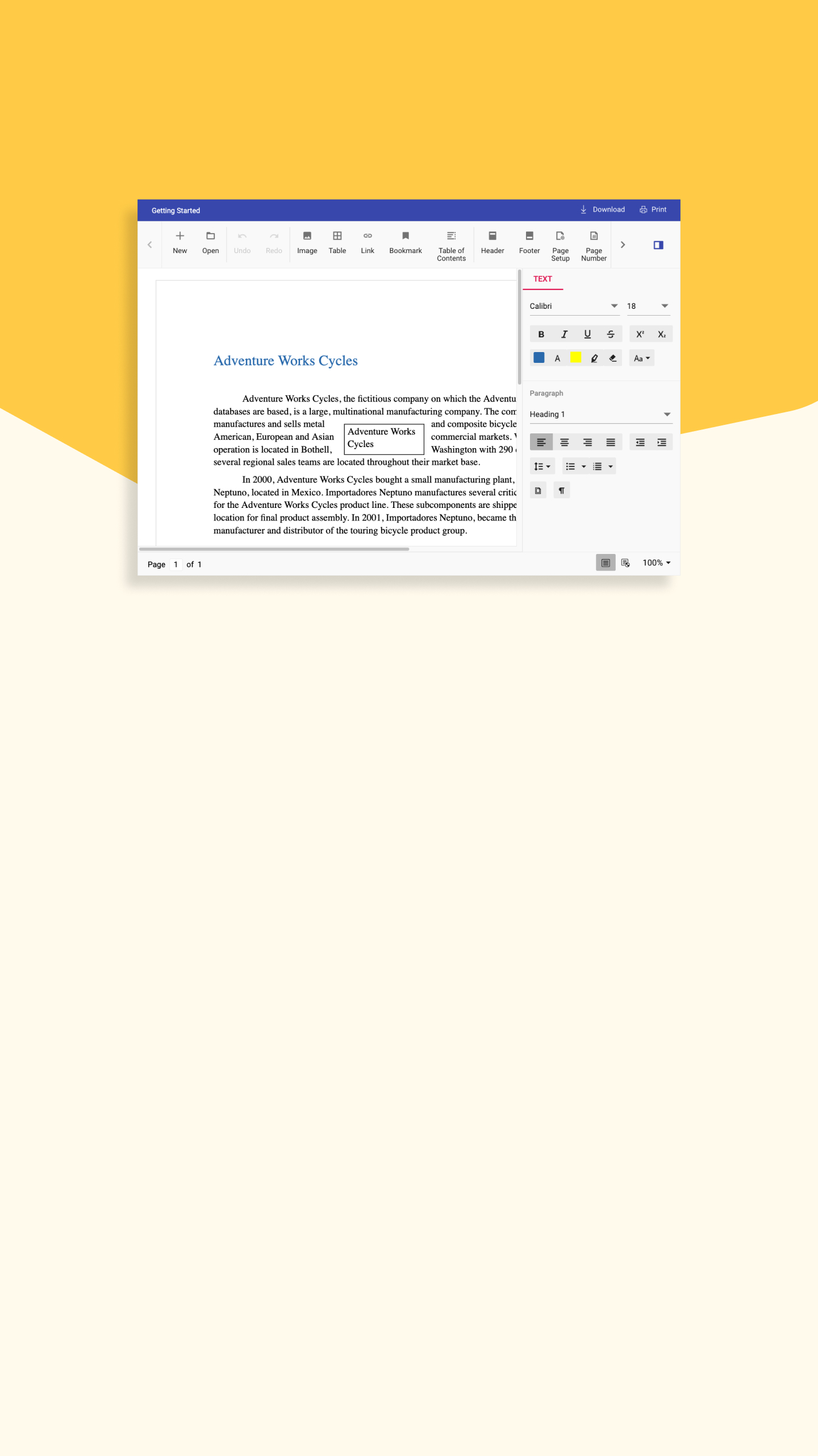 This is a feature-rich UI control that helps users create, edit, view, and print Word documents. It has editing capabilities like Microsoft Word and provides all the standard word-processing features.