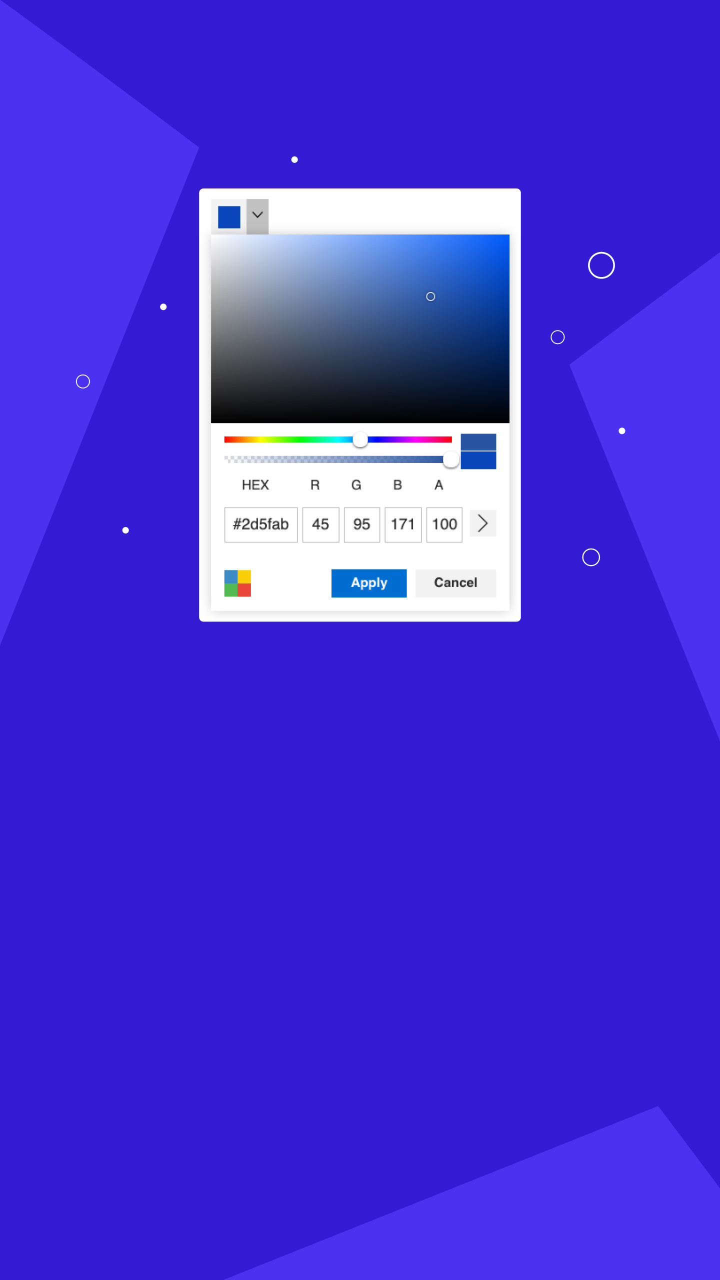 Smooth selection, adjusting, and editing of HEX, RGBA, and HSVA color values.