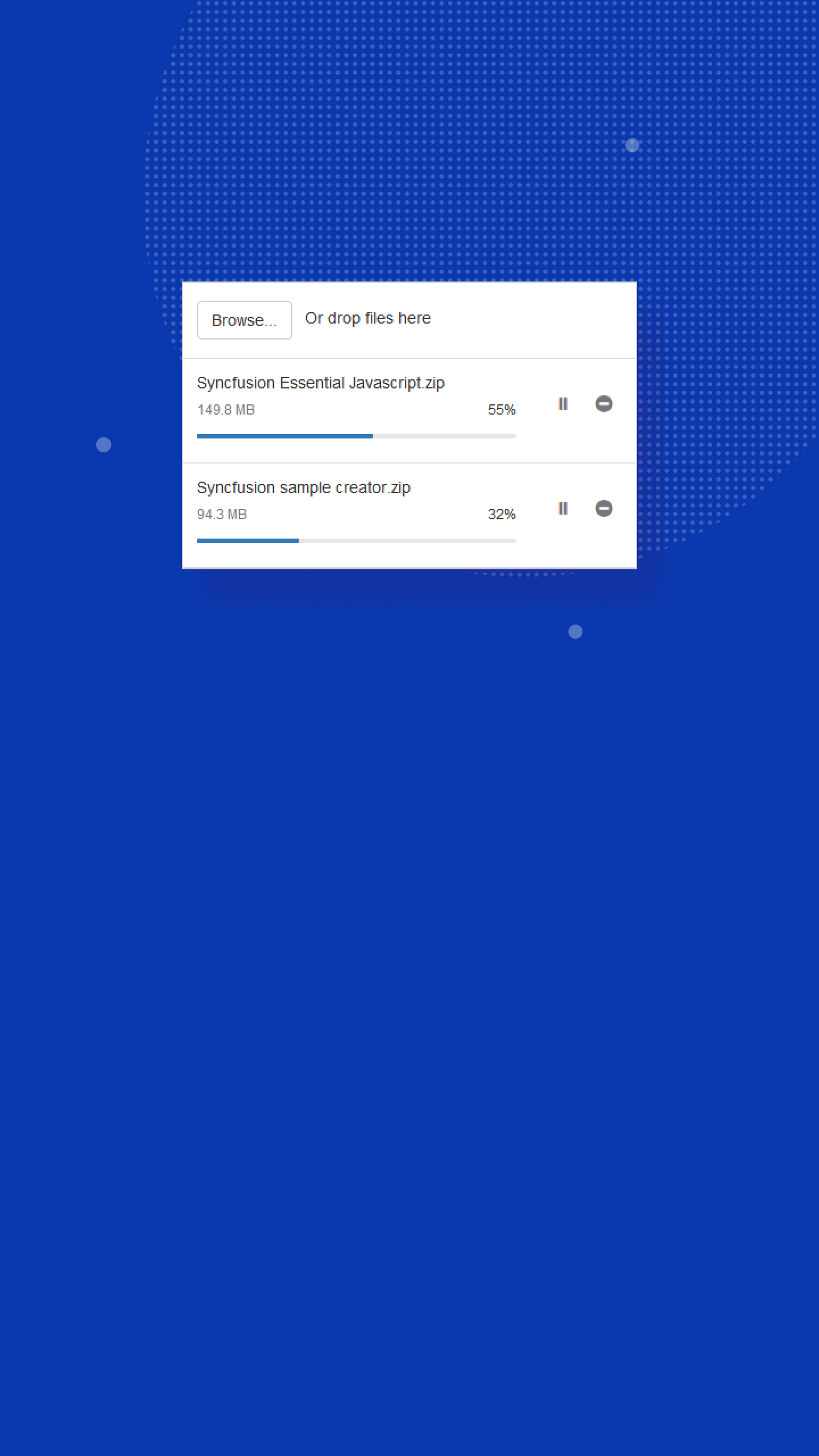 Templates are used to customize the default appearance of the uploader. The ASP.NET Core File Upload control supports file list template and custom template.