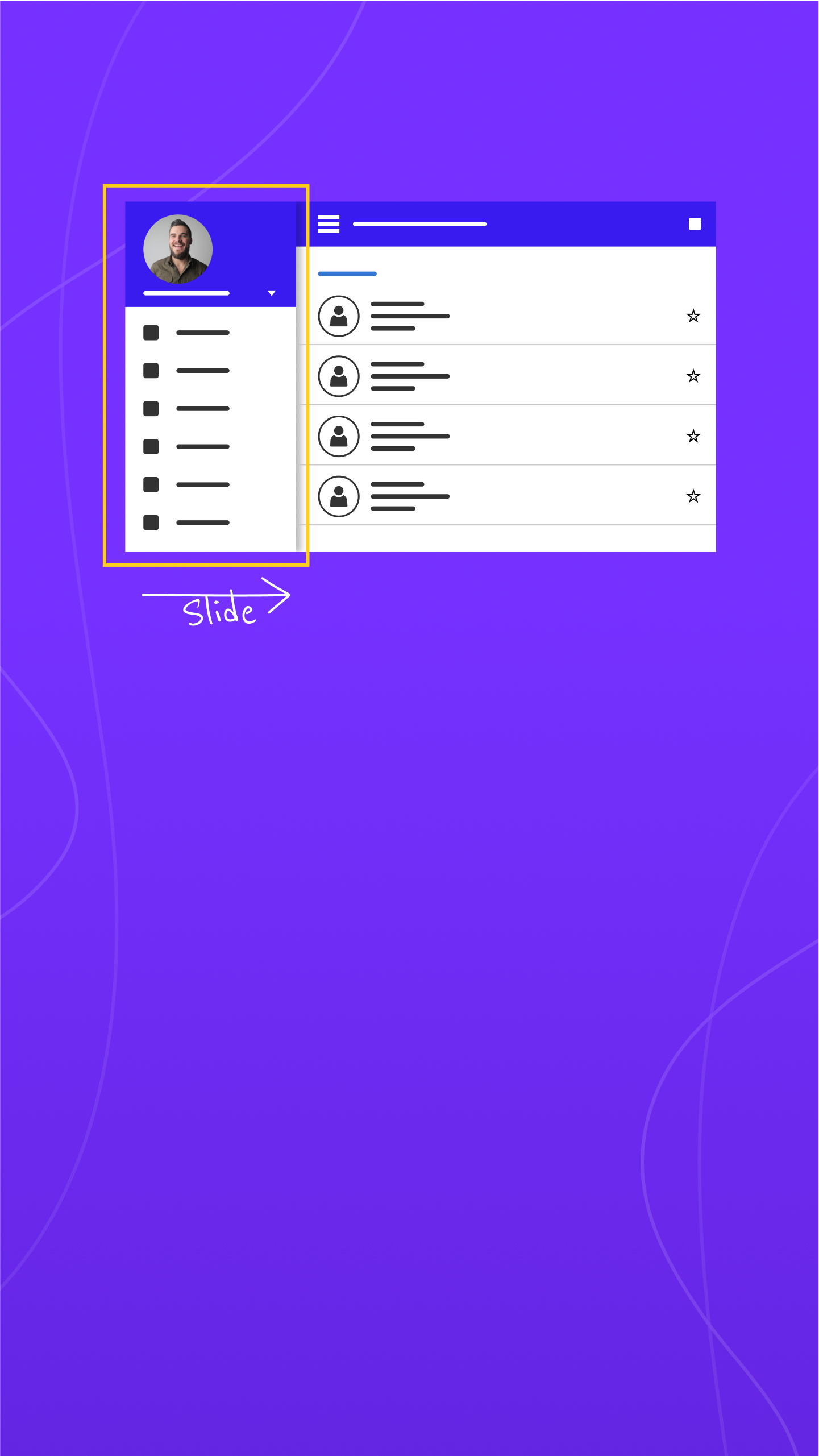The Blazor Sidebar's various slide-out transitions allow users to view or hide content over or above the main content by pushing, sliding, or overlaying it.